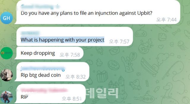 활동이 이어지고 있는 SNS 커뮤니티도 있었다. 투자자들이 모인 텔레그램 채널과 공식 엑스(구 트위터), 글로벌 최대 소프트웨어 개발 플랫폼 깃허브였다. 텔레그램 채널에서는 업비트의 상폐 결정에 대해 불안감을 호소하는 외국인 투자자들이 다수였다. 한 투자자는 “업비트에서 비트코인 골드가 사라지는 것이 맞냐”며 “업비트에 상폐를 취소할 것을 제기할 계획이 있나”라고 묻기도 했다.