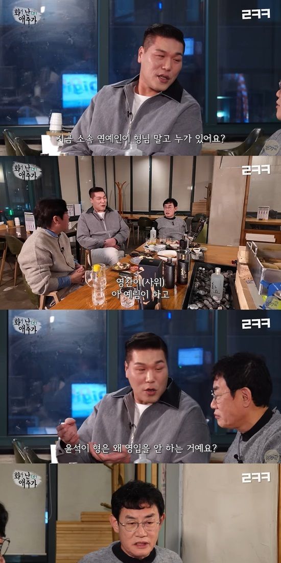 이수근은 "돈이 안 되잖아"라고 받아쳤고 이경규는 "어떻게 알았냐"며 "내가 술 먹으면서 이윤석을 불렀다. 윤석이가 계약기간이 끝났다더라. 그 회사에 내가 들어가서 있다가 나왔었다. 윤석이도 끝난 거다. 자기 데려가라는 이야기 아니냐"라며 당시를 회상했다.