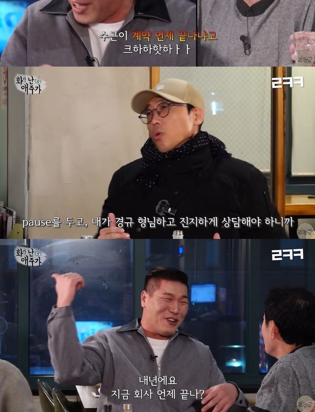 서장훈은 "맨 처음에 회사 차리면서 저한텐 연예인 영입을 많이 생각했다고, 이수근 계약 언제 끝나냐고 했지 않나"라고 폭로했다.