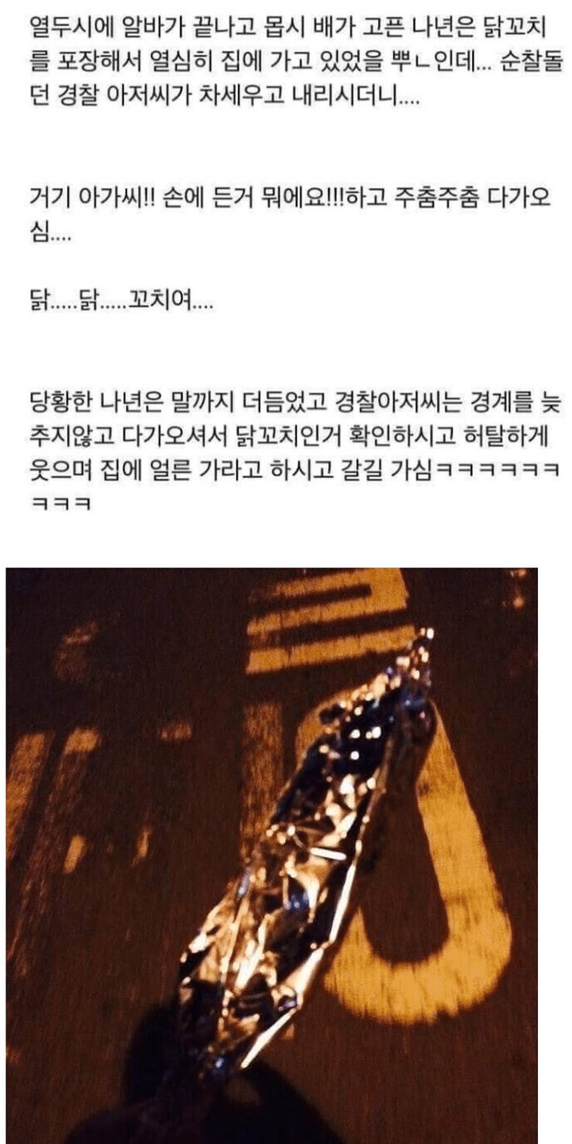 닭꼬치 가지고 가다 경찰에게 검문 당한 썰,,