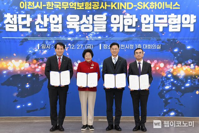 한국무역보험공사(이하 “무보”)는 27일 경기도 이천시 청사에서 이천시, 한국해외인프라도시개발공사(이하 “KIND”), SK하이닉스와 반도체 공급망 안정화 및 수출증진을 위한 업무협약을 체결했다고 밝혔다.