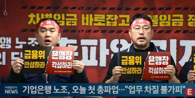 기업은행에 따르면 이날 오전 10시 영업점 직원의 약 55%가 이날 파업에 동참한 것으로 잠정 집계됐습니다.