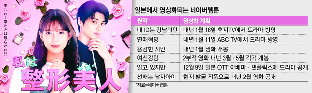 내년 1월 11일에는 일본 간사이 지역 방송 ABC TV가 네이버웹툰 ‘연애혁명’을 원작으로 한 드라마를 방송하고, 같은 달에는 ‘용감한 시민’을 기반으로 한 영화가 현지에서 개봉한다.