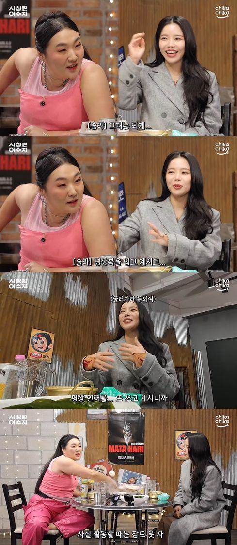 이수지는 "우리 얼마 만이냐"라며 반가워한 반면, 솔라는 "저희 어디서 봤었냐"라며 의아해했다.