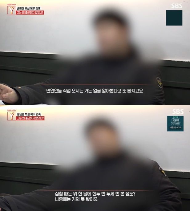 또 처음에는 일주일에 몇 번 정도 얼굴을 봤다면서 "나중에는 거의 못 봤다"라고 폭로, 심각한 근태 문제를 지적했다.