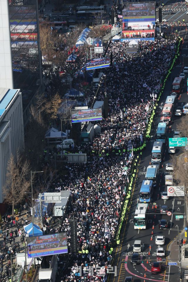 행안부는 지자체, 경찰, 소방 등 관계기관과 함께 인파 모니터링 강화, 안전관리 인력 보강, 인파 혼잡 시 무정차 통과 등 광화문 인근 지하철 역사와 출입구 혼잡 완화 대책을 시행한다.