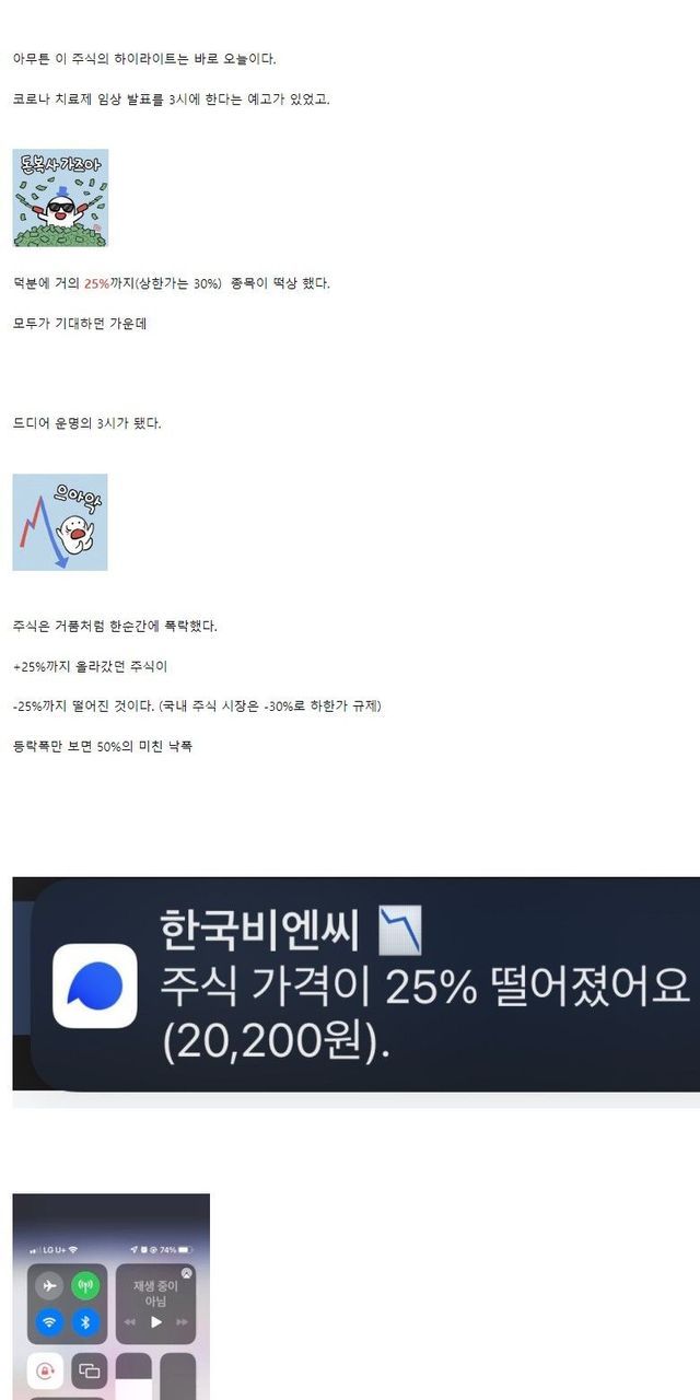 오늘 충격과 공포의 주식판.