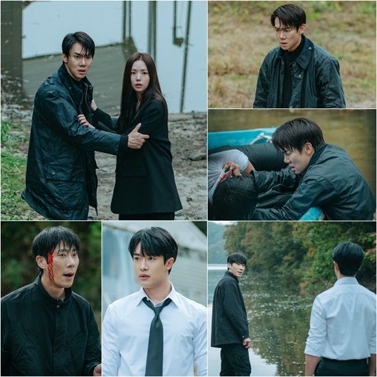 이날 사언은 희주를 인질로 삼은 도재와 납치범의 연락을 받고 아내를 구하기 위해 곧장 낚시터로 향한다. 하지만 사언은 이내 눈앞에 닥친 믿을 수 없는 광경에 충격을 받는데. 스틸에는 피범벅인 채 정신을 잃은 도재의 모습이 포착돼 예사롭지 않은 일이 벌어졌음을 직감케 한다.
