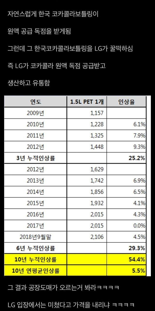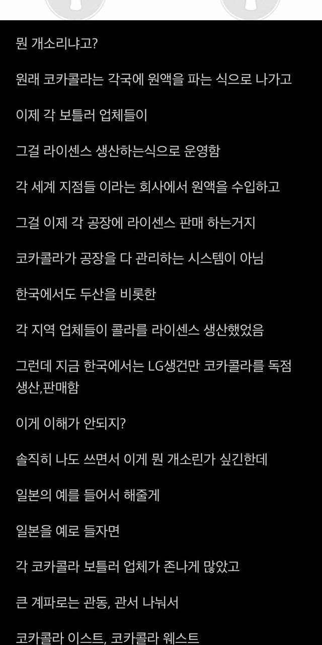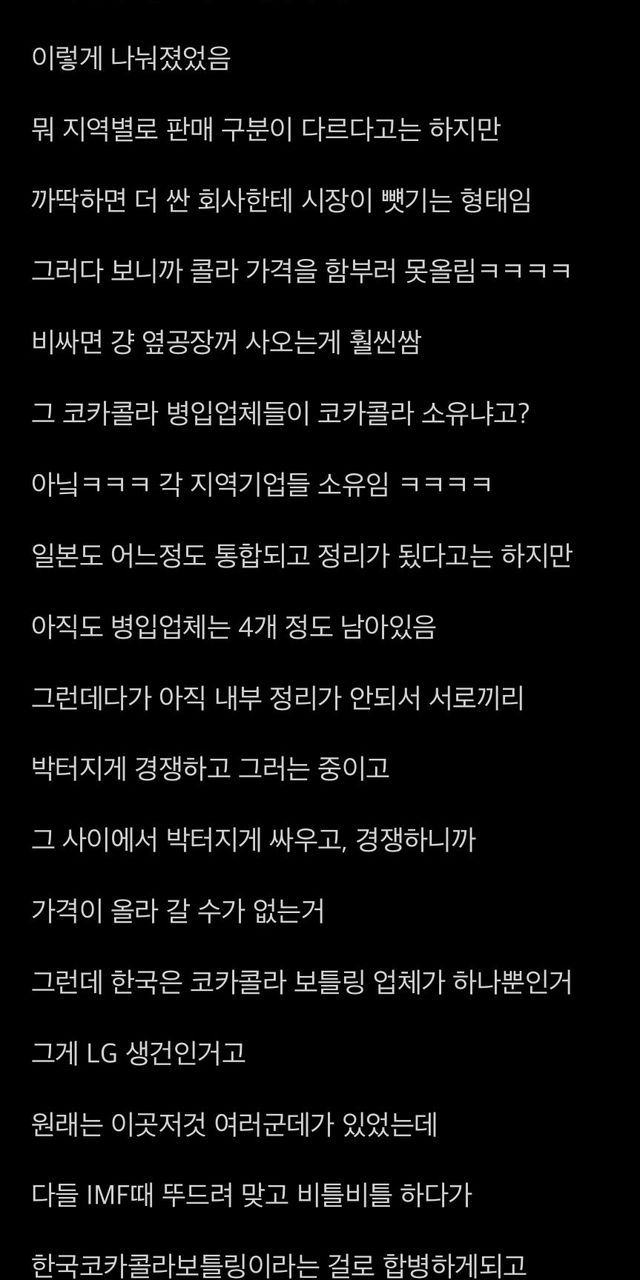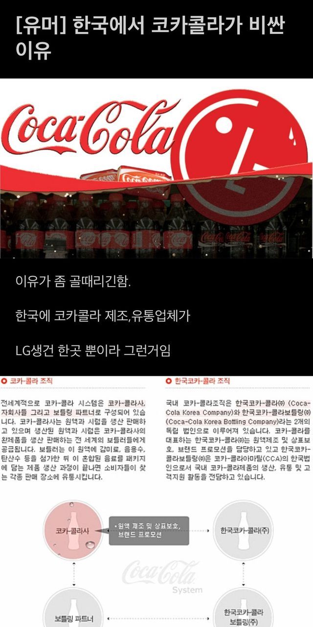 1. 코카콜라는 원액을 수입해서 국내에서 제조함