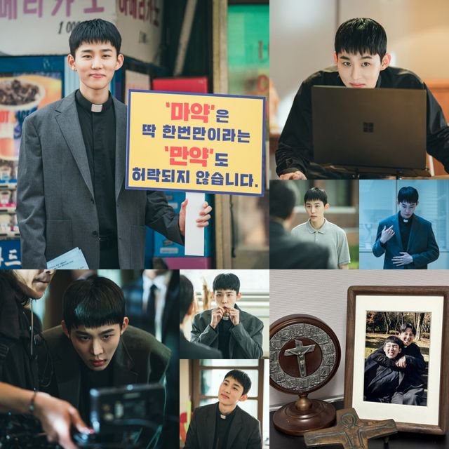 어제도 꿈에 도우가 나온 걸 보면 아직은 보내주기 싫은가 봅니다. 제가 실제로 대본을 보는 책상 위에 도우와 해일 신부님이 찍은 사진과 십자가를 두었는데요. 마지막 촬영이 끝나고 다음 날 침대에서 사진을 바라보고 한동안 눈을 떼지 못했던 기억이 납니다. 처음 수단과 로만칼라를 하고 현장에 갔을 때는 송할머니께서 “채도우 부제님 오셨어요”라며 늘 ‘부제님’이라고 불러주셨는데 그날의 감정과 온도, 습도까지 머릿속에 사진 한 장처럼 남아있는 것 같습니다. 촬영장을 간다는 기분보다는 도우의 일상을 보내는 것 같았기에, 도우와의 이별은 시간이 좀 더 걸릴 것 같네요.
