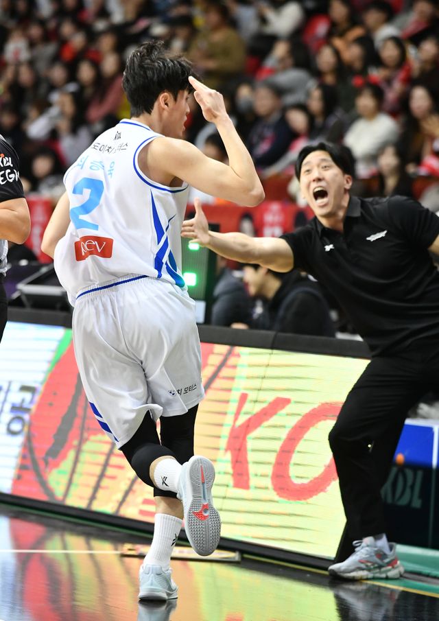 2쿼터 삼성의 집중력은 더 무서웠다. 구탕이 초반 날아올랐다. 박정웅의 공을 스틸한 뒤 리버스 덩크로 2쿼터 포문을 열더니 외곽포와 점퍼 등 내외곽을 가리지 않고 점수를 쌓았다. 여기에 최승욱과 박승재의 외곽포가 더해지면서 54-24, 30점 차까지 격차를 벌렸다. 정관장도 뒤늦게 추격에 나섰으나 이미 벌어진 격차를 좁히기엔 역부족이었다.