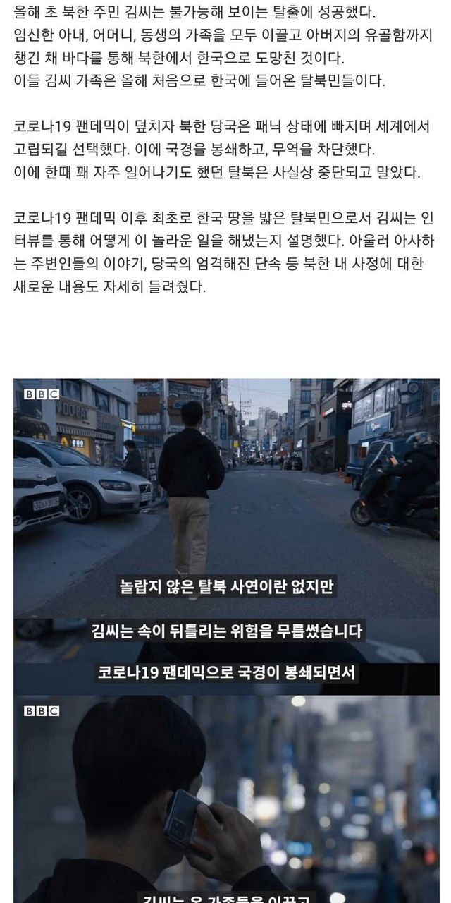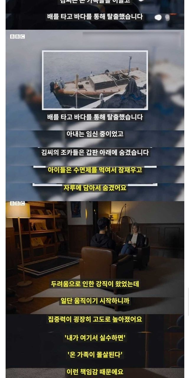 BBC에서 목선타고 탈북한사람 인터뷰했다는데..