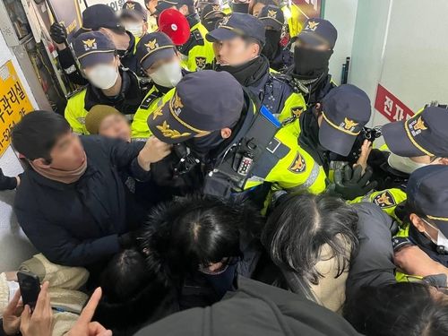 이들이 찾아오자 박 의원 측이 경찰에 협조를 요청하면서, 출동한 경찰과 시민들이 낮 12시부터 현재까지 4시간 넘게 대치하고 있다.