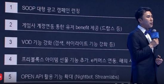 그는 커뮤니티 확대를 위한 노력도 설명했다. 최영우 CSO는 "내년 상반기 중에는 대형 광고를 통해 (지금까지) SOOP을 몰랐던 분들도 이용할 수 있도록 하고자 한다"라며, "게임사와 대전 연동도 더욱 적극적으로 추진해 이용자들이 e스포츠 및 게임 시청을 통해 실질적인 혜택을 얻을 수 있도록 준비 중이다"라고 전했다.