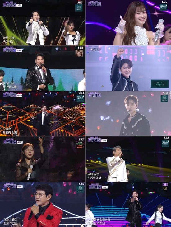 28일 오후 방송된 '2024 SBS 트롯대전'에서는 대한민국 트로트 계를 이끄는 최정상 가수들이 총출동해 다채로운 무대를 선보였다. 이번 '2024 SBS 트롯대전'은 지난 26일 인천 영종도 인스파이어 아레나에서 진행됐으며, 가수 영탁과 배우 박하선이 MC를 맡았다.