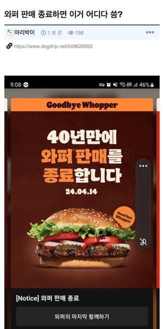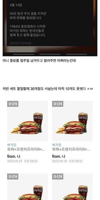 현재 와퍼 판매 종료로 ㅈ된 사람