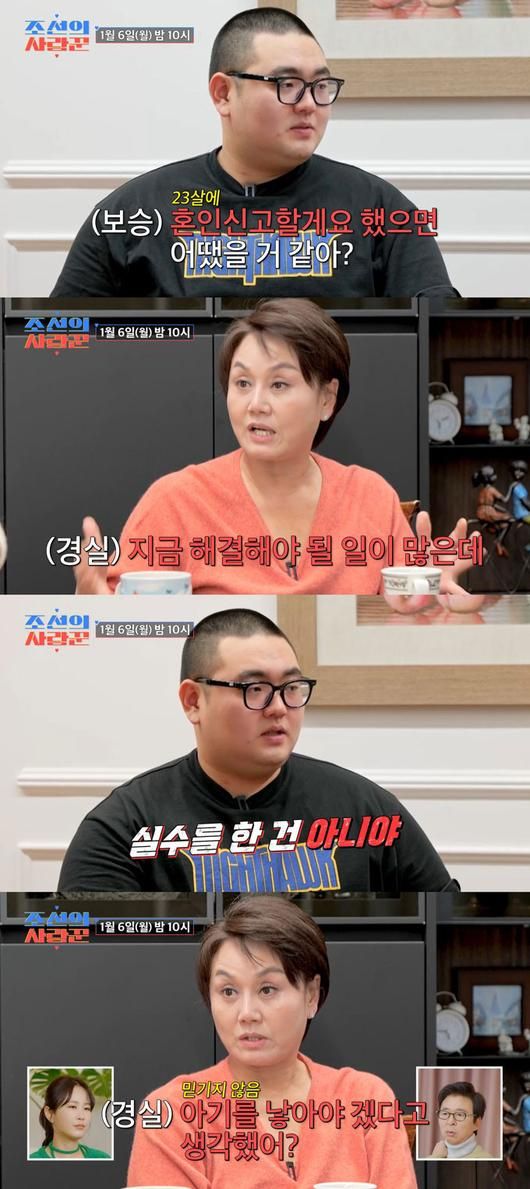 방송에서 이경실은 "군대도 안 간 아들이 23살에 아이를 가졌다고 했을 때 그냥 까마득했다"며 당시 심경을 토로했다. 이어 "아이는 아직 아니다 싶었고 그것만큼은 말리고 싶었다"고 솔직한 심정을 밝혔다.
