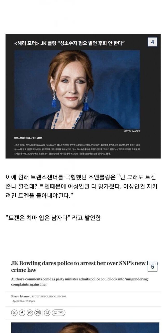 요즘 갈수록 추해지시는 해리 포터 원작자 양반
