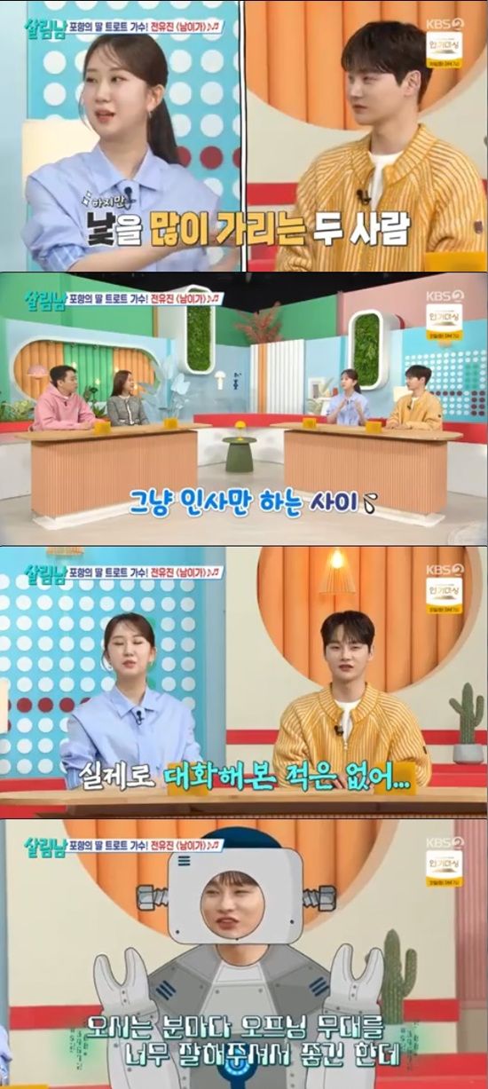 전유진은 "저도 낯을 가리는데 선배님도 낯을 많이 가리시는 것 같다. 인사만 하고 대화를 해 볼 기회가 없었다"고 했다.