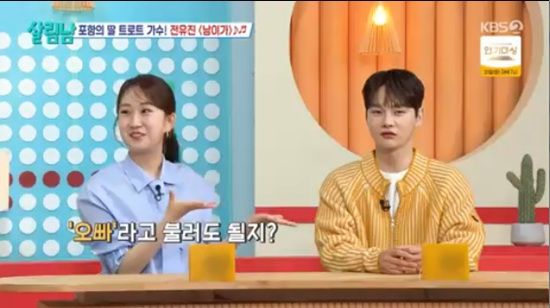 전유진은 박서진을 선배님이라고 부르면 너무 딱딱한 것 같아서 오빠라고 해도 될지 고민이었다고 했다.