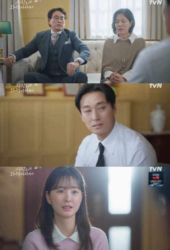 28일 방송된 tvN 토일드라마 '사랑은 외나무다리에서'(이하 '사외다') 11회에서는 윤지원(정유미 분)이 석경태(이병준)에게 석지원(주지훈)을 향한 진심을 밝힌 모습이 그려졌다.