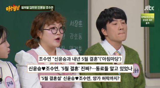 이날 조수연과 신윤승에 이수근이 "내년 5월에 날 잡았다던데 제대로 붙기로 한 거냐"라고 묻자 신윤승은 "나는 맞짱이라고 생각한다"라며 해명했다. 그러나 조수연은 "내년 5월에 결혼할 거다. 말에는 힘이 있다고 생각한다"라며 어필했다.