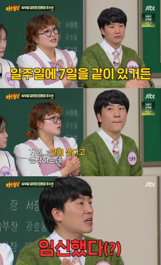 28일 방송된 JTBC '아는 형님'에는 '썸 의혹'이 제기된 임우일과 김지유, 신윤승과 조수연이 출연해 남다른 입담으로 현장 분위기를 압도하며 '썸 의혹' 커플들을 둘러싼 다양한 에피소드를 공개했다.