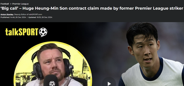 좋게 표현해서 '떠난다'는 얘기다. 내용을 알고 보면 쫓겨날 것이라는 뜻에 가깝다. 손흥민의 실력이 급락하고 있다고 강조했다.