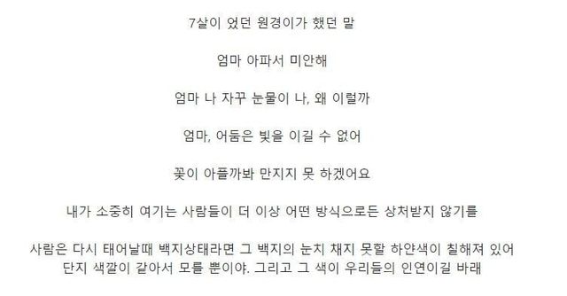 내일도 행복했으면 좋겠다라고 써져 있었다고함 ㅠㅠ