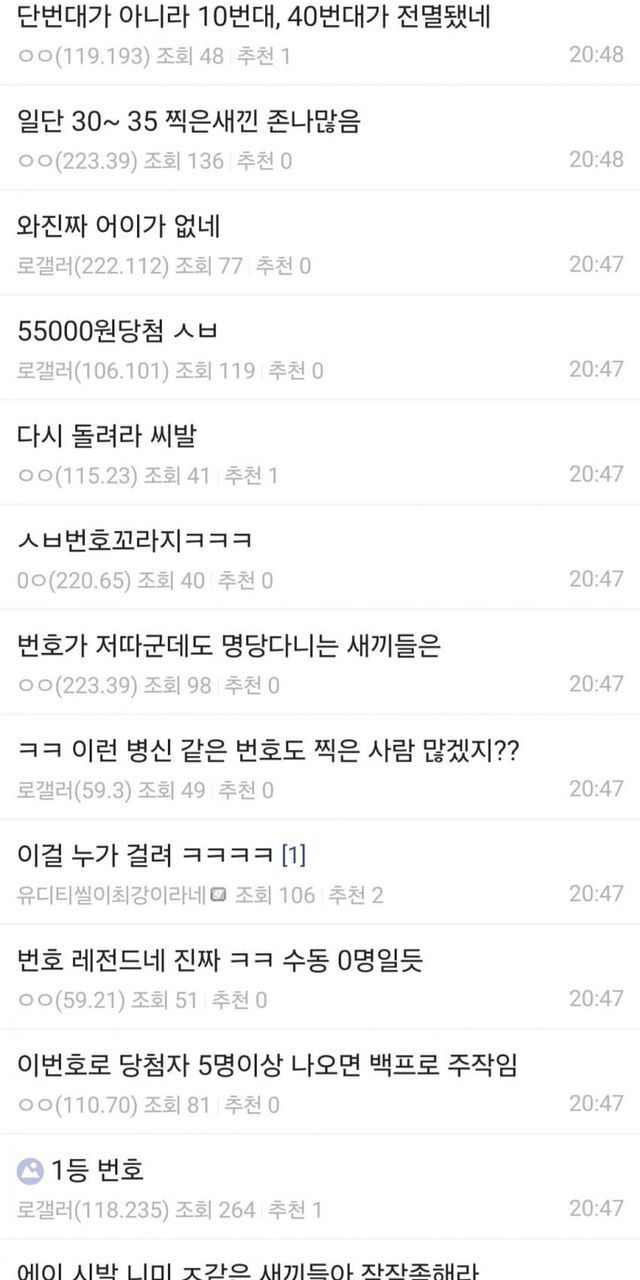 어매 뒤진 번호인데 35명 당첨됨 ㅋㅋㅋㅋㅋㅋㅋ