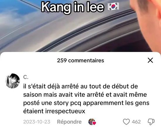 프랑스 메이드인풋은 "'컴 온 차이니스!' PSG 서포터가 이강인 앞에서 인종차별 발언을 했다. 지난 금요일 SNS에 게재된 영상에는 한 PSG 팬이 이강인에게 'Allez mon Chinois'라고 말하는 모습이 담겨 있다"고 전했다.