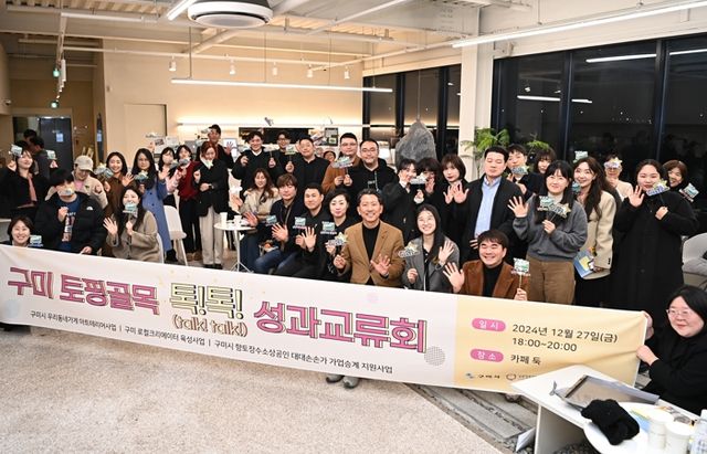 [파이낸셜경제=김예빈 기자] 구미시는 지난 27일 ‘카페 둑’에서 김장호 구미시장, 소상공인, 사업 담당자 등 40여 명이 참석한 가운데 소상공인 정책 및 지원사업 성과공유회 ‘구미 토핑골목 톡톡(talk,talk!!)’을 개최했다.