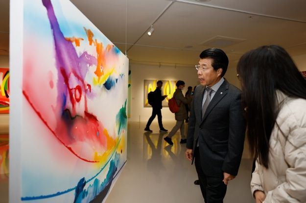 | ▲ 지난 11월 22일 개관한 ‘더 갤러리 호수’에서 서강석 구청장이 작품을 감상하고 있다. |