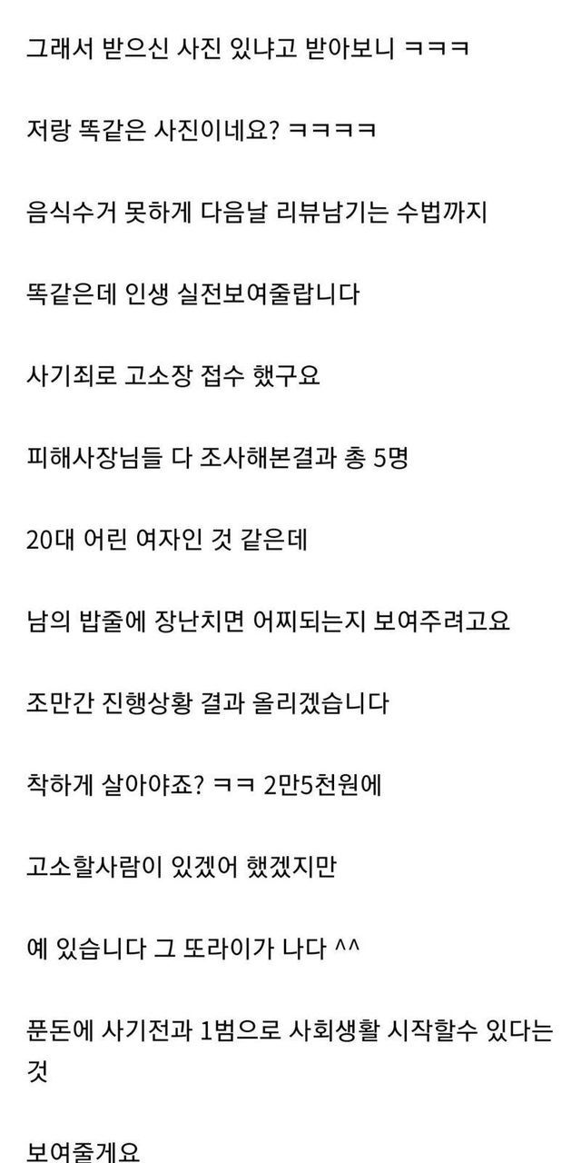 [스압] 배민 허위 리뷰로 고소당한 20대 여성,,