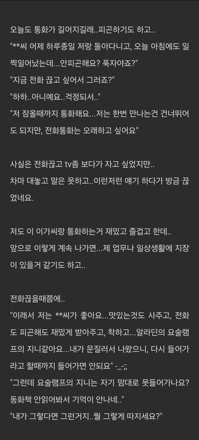 전화통화 (오래) 하는 거. 많은 여자들이 좋아함.