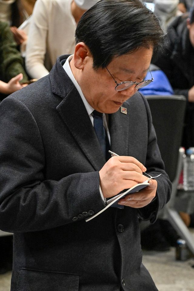 유가족 목소리 적는 이재명 대표 / 뉴스1