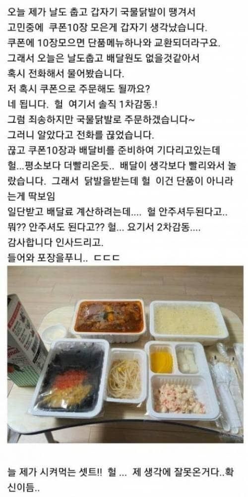 닭발집에 그동안 모은 쿠폰으로 주문했더만…