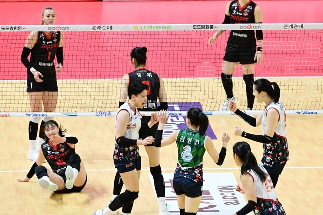 페퍼저축은행은 29일 광주 페퍼스타디움에서 열린 도드람 2024~2025 V-리그 여자부 3라운드 현대건설과의 홈경기에서 세트스코어 3-2(22-25, 25-23, 19-25, 26-24, 15-12) 승리를 거뒀다.
