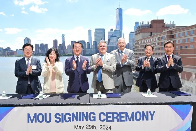 | ▲ 유정복 인천광역시장(왼쪽 세번째)이 지난 5월 29일(현지시간) 미국 뉴저지에서 부동산 개발사 파나핀토 글로벌 파트너스, 대한항공 등과 영종도 내 항공복합문화시설 건립을 위한 양해각서를 교환했다. |