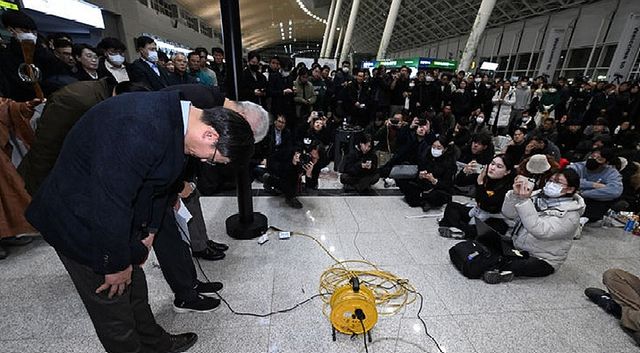 김이배 제주항공 대표는 긴급 브리핑서 “이번 사고로 유명을 달리하신 탑승객과 유가족분들께 깊은 사과의 말씀을 올린다”며 “사고 이유를 불문하고 제주항공 최고경영자로서 책임을 통감한다”고 고개 숙여 사과했다.
