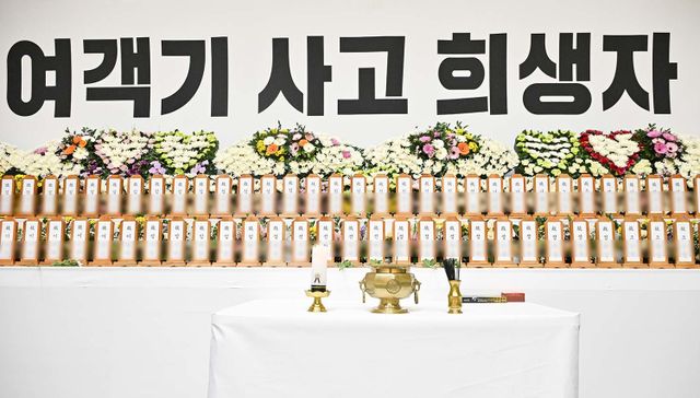 30일 전남 무안군 무안종합스포츠파크에 마련된 제주항공 여객기 사고 희생자 합동분향소에 위패가 놓여 있다. / 뉴스1 (공동취재)