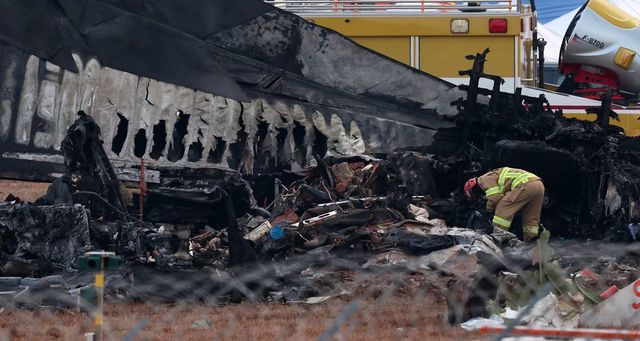 30일 오전 전남 무안국제공항에서 소방대원들이 전날 발생한 제주항공 여객기 충돌 폭발 사고 잔해를 수색하고 있다 / 뉴스1