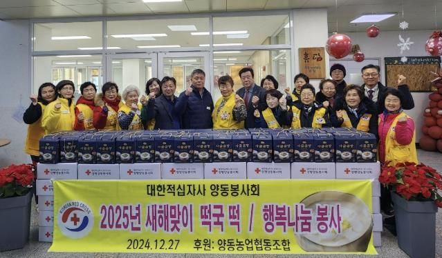 정창업 양동면장은 “추운 날씨에도 매년 새해를 맞아 복지 취약계층을 위해 따뜻한 나눔을 실천해 주시는 적십자 봉사회에 진심으로 감사를 드리며, 관내 어려운 이웃들에게 웃음 많은 행복한 양동면이 될 수 있도록 최선을 다하겠다”고 말했다.