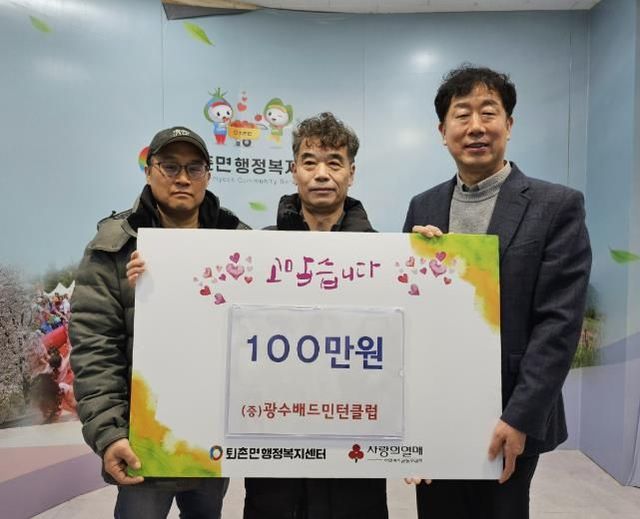 매년 꾸준히 후원금을 전달해 온 광수배드민턴클럽 회원들은 “마음의 온기를 모아 주위 이웃들이 따뜻한 겨울을 보낼 수 있으면 한다”며 “희망찬 지역사회를 만들어 나가는 데 보탬이 되고 싶다”고 기부 소감을 전했다.