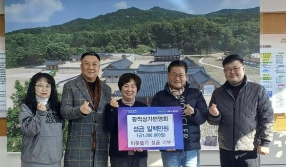 이번 기부금은 ‘광적상가번영회’가 경기 불황 등 어려운 여건 속에서도 이웃과 함께 온정을 나누기 위해 회원들과 십시일반 모아 마련한 것으로 그 의미가 깊다.