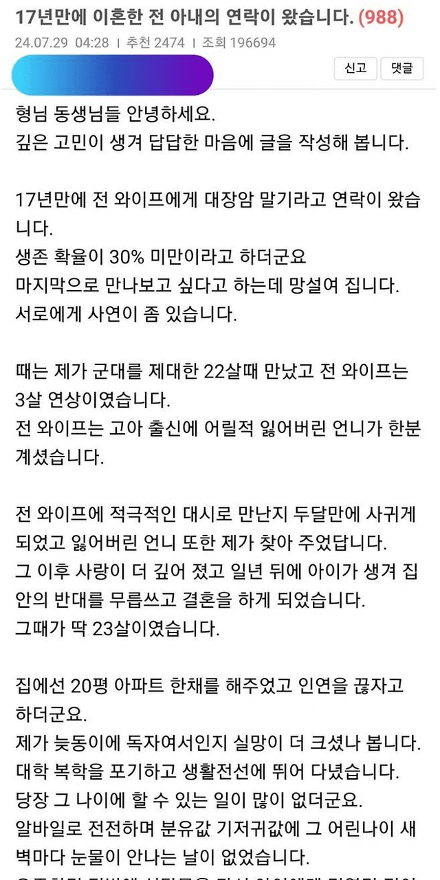 17년 전 이혼한 전 아내에게 온 연락