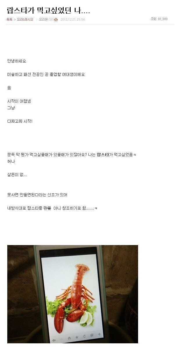 랍스타가 먹고 싶었던 여대생