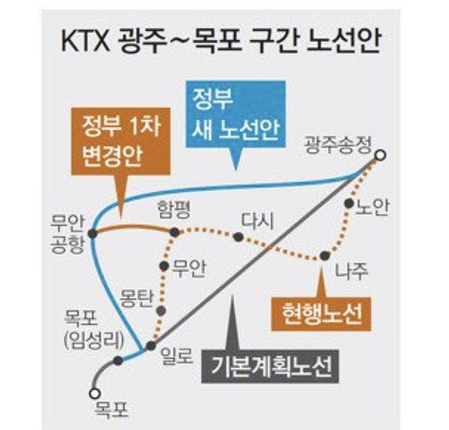 무안공항이 끼여버려서 어쩔 수 없이 노선을 틀음.