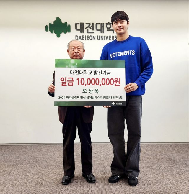 파리 올림픽에서 2관왕을 달성한 오상욱(대전광역시청)이 모교 대전대학교에 1000만원을 기부했다.