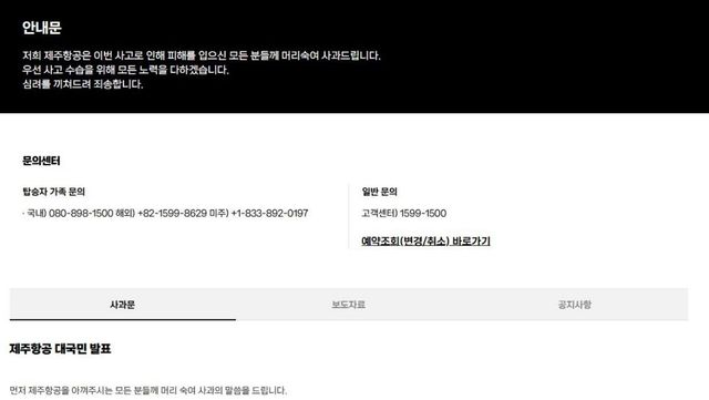 제주항공 공지사항 / 제주항공 홈페이지 캡처